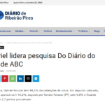 O levantamento realizado pelo Instituto Paraná Pesquisas e divulgado nesta terça-feira (24) pelo Diário do Grande ABC mostra Gabriel Roncon (PP) em primeiro lugar na disputa pela Prefeitura de Ribeirão Pires a poucos dias da eleição municipal. O candidato apresentou um crescimento de 10,2% desde a última pesquisa, realizada em julho, e agora conta 44,1% das intenções de votos – ultrapassando o atual prefeito da Estância e candidato à reeleição, Guto Volpi (PL).